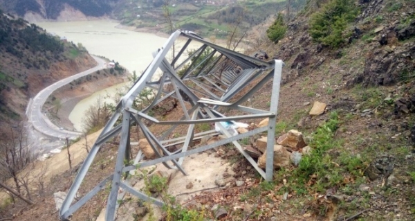 Gümüşhane’de rüzgar elektrik direklerini kağıt gibi büzdü