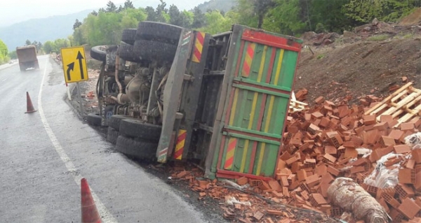 Tuğla yüklü kamyon devrildi: 1 yaralı