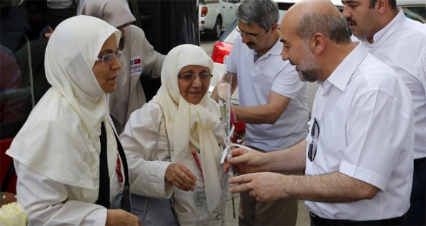 Diyanet İşleri Başkanlığı yetkilileri tarafından Aziziye Cenubiye bölgesindeki otelleri önünde gül ve zemzem suyu ikram edilerek karşılanan şehit yakınları, kalacakları otele yerleştirildi. Karşılama sırasında duygularını Türk basın mensuplarına anlatan kimi şehit yakınları, üzüntü ve sevinci bir arada yaşadıklarını söylediler. Bazı şehit yakınları çok kutlu bir yolculuğa çıkmanın mutluluğunu duyduklarını belirtirken, bazıları da hislerini ifade ederken göz yaşlarını tutamadı.