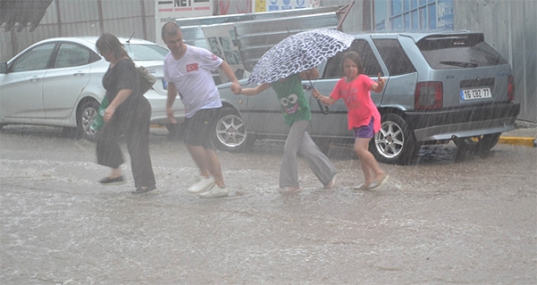 Balıkesir'de aniden bastıran sağanak yağmur hayatı olumsuz etkiledi. Yağışın etkisi ile şehrin en işlek caddelerinde saniyeler içinde kimse kalmazken, sağanağa yolda yakalananlar sırılsıklam oldu. 5 dakika süren yağış dolayısı ile ağaçların dallarında kopmalar olurken, vatandaşlar su baskınlarına karşı dükkanlarının kapı altlarını kapatmaya çalıştı. Bazı yerlerde ise elektrik direkleri devrildi.