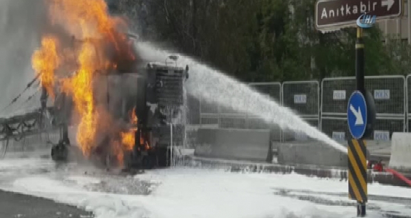 Alınan bilgiye göre, Ankara adliyesi önünde asfalt çalışması sırasında doğalgaz borusu patlayarak alev aldı. Patlama sonucu Emrah Z. yönetimindeki iş makinesi alev aldı. Sürücü yara almadan kurtulurken iş makinesi alev alev yandı. Olay yerine çok sayıda itfaiye ve polis ekibi sevk edildi. Yangın itfaiye ekiplerin çalışması sonucu kontrol altına alındı.