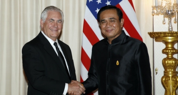 ABD Dışişleri Bakanı Rex Tillerson, Tayland’la ticaret ilişkilerini geliştirmek ve Kuzey Kore’nin kıtalararası balistik füze denemelerine ilişkin görüşmeler gerçekleştirmek amacıyla başkent Bangkok’a geldi. Tillerson, resmi ziyaret kapsamında Tayland Başbakanı Prayut Chan ocha ile bir araya geldi.
