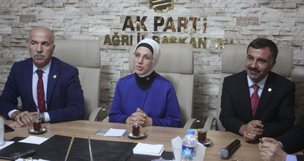 Patnos ilçesinde AK Parti ilçe kongresine katılan AK Parti Genel Başkan Yardımcısı Ravza Kavakçı Kan, AK Parti Ağrı 24. Dönem Milletvekili Ekrem Çelebi, AK Parti Milletvekili Cesim Gökçe, AK Parti İl Başkanı Abbas Aydın ve beraberindeki heyetle birlikte karayolu ile Ağrı’ya geçerek İl Başkanlığı binasında partililer ile bir araya geldi. Burada partililere konuşma yapan Kan, AK Parti teşkilatı ile bir araya gelmenin kendilerine enerji verdiğini ve son 4 ayda Ağrı’ya üçüncü gelişinin olduğunu söyledi. Yeni atanan AK Parti İl Başkanı Abbas Aydın’a hayırlı olsun temennisinde bulunan Kan, dün AK Parti iktidarının 15. yıl dönümü olduğunu belirtti. Kan, “Bu kutlamalar bizim için bir şükretme, hamd etme meselesi hem de yapılacak ne kadar çok işimiz var ona da bakmanın vesilesi, Sayın Cumhurbaşkanı ve Genel Başkanımız bu ülke için gece gündüz koşturduğu bir halde iken bizlerinde ondan daha fazla koşturmamız lazım, yükünü hafifletmemiz lazım. Çünkü 15 sene evvelinde bugüne baktığımızda Türkiye yok artık. Artık Türkiye uluslararası sistemde söz sahibi, mazlumların dertleri için koşturan bir Türkiye var. Bizde bundan sonrası için daha iyi işler yapabilmek için gece gündüz çalışmaya inşallah devam edeceğiz. Genel merkezimizden ilçelerimizin sandık sorumlularına kadar her kademedeki teşkilat ailesi mensubu çalışmaya devam edecek” dedi.
