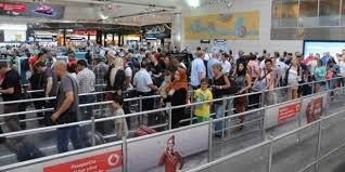 Tarihinin en yoğun günlerinden birini yaşayan Atatürk Havalimanı'nda pasaport ve check in bankolarında uzun kuyruklar yaşandı. Atatürk Havalimanı Pasaport Büro yetkilileri tüm pasaport bankolarını açık tutarak yolcuların mağdur olmaması ve uçaklarını kaçırmaması için yoğun çaba harcadı. Tüm önlemlere rağmen artan yolcu nedeniyle pasaport bankoları ve çekin adalarında uzun kuyruklar oluşurken, alınan önlemlerle yolcuların uçağını kaçırması önlendi.