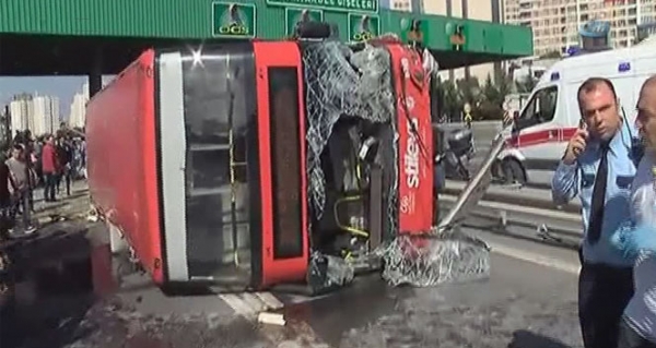 Kaza, Bahçeşehir Ispartakule gişelerinde saat 11.00 sıralarında meydana geldi. İddiaya göre, Bahçeşehir yönüne giden çift katlı bir otobüs gişelerden geçtiği sırada devrildi. Şoförünün direksiyon hakimiyetini kaybettiği otobüsün, önce gişelere çarptığı ardından yere savrulduğu öğrenildi. Kazanın ardından olay yerine çok sayıda polis, sağlık ve itfaiye ekibi sevk edildi. Ekiplerin çalışmaları devam ederken çok sayıda yaralı olduğu öğrenildi.