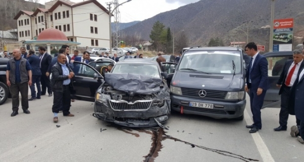 Milli Savunma Bakanı Fikri Işık'ın Gümüşhane ziyareti sırasında konvoyunda meydana gelen trafik kazasında ilk belirlemeler göre 5 kişi yaralandı.