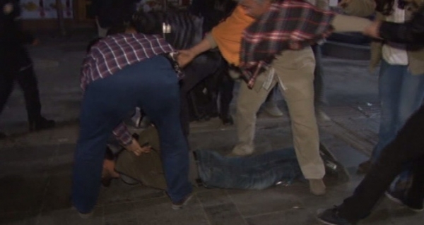 Eylemi sonlandırmak için 3 dakika süre tanıyan polis ekipleri, tüm uyarılara rağmen oturma eylemine devam eden eylemcilere müdahalede bulundu. Grubu dağıtmak için harekete geçen Çevik Kuvvet polisleri, mukavemette bulunan eylemcilere biber gazı sıkarak, yaka paça gözaltına aldı. Yapılan müdahale sonucunda 3 kişi gözaltına alındı. Müdahale sırasında fenalık geçiren yaşlı bir kadın, çevredeki vatandaşlar tarafından alandan uzaklaştırıldı. İhbar üzerine alana sevk edilen sağlık ekipleri, yaşlı kadını tedavi edilmek üzere ambulansla hastaneye götürdü.