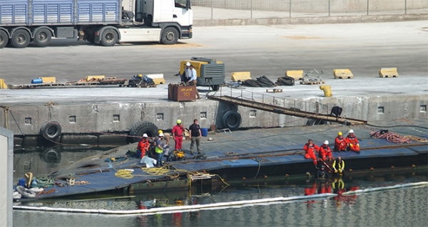 Balıkesir'in Bandırma ilçesindeki limanda 14 Mayıs günü batan 'Ali Ağa' adlı Türk bandıralı 1998 grostonluk gemi sebebiyle yürütülen çalışmalar devam ediyor. Geminin ambarında ve güverte bölümünde bulunan yüklerin denizden çıkarılması için Herkül isimli yüzer vinç ile çalışmalar başladı.