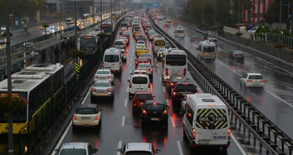 İstanbul’genelinde aniden bastıran yağmur, bazı cadde ve sokaklarda trafikte yoğunluğa neden oldu.