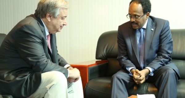 BM Genel Sekreteri ile Somali Cumhurbaşkanı, siyasi ve güvenlik konusundaki gelişmeleri, özellikle şu anda Somali’nin büyük bir kısmını kapsayan ve ve binlerce büyükbaş hayvanın, ve onlarca insanın açlıktan ve susuzluktan ölümüne yol açan, köylerden kentlere göçe sebep olan kuraklıkla ilgili görüşmede bulundu.