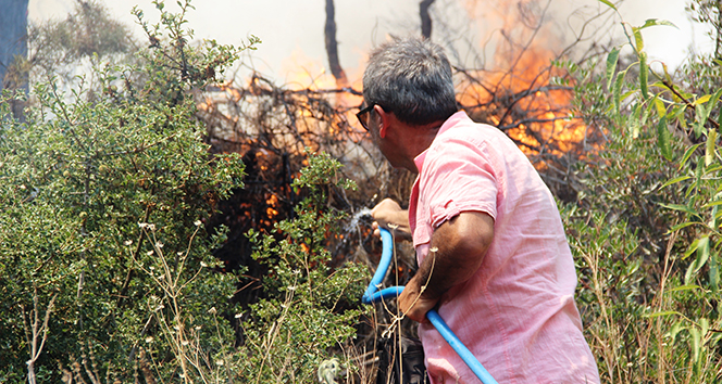 Hızla büyüyen yangını söndürmek için çevrede bulunan vatandaşlar da seferber oldu. Evinin yakınına kadar gelen yangın nedeniyle korku dolu anlar yaşayan ev sahibi gözyaşlarına boğuldu. Bahçede bulunan ve yoğun dumandan etkilenen bir köpek ise vatandaşlar tarafından kurtarıldı.