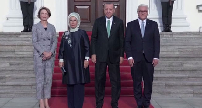 Cumhurbaşkanı Recep Tayyip Erdoğan resmi temaslarda bulunmak üzere geldiği Berlin’de Almanya Cumhurbaşkanı Frank Walter Steinmeier tarafından askeri törenle karşılandı.