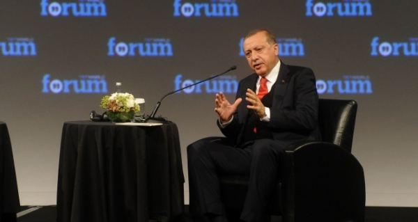 Erdoğan, panelin moderatörünün, "Size destek veren ülkelerin sayısı giderek artıyor değil mi?" sorusuna, "İkili görüşmeleri yaptığımız zaman artıyor. Fakat o güçlerin karşısına geldikleri zaman, kalkıp da 'Dünya beşten büyüktür.' diyemiyorlar. Niye? Bir yerden bağlılıkları var" şeklinde yanıtladı.