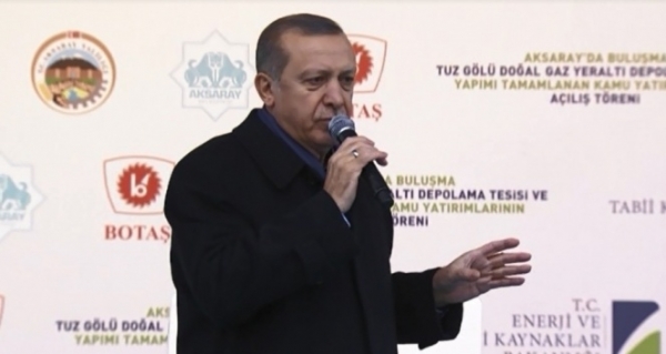Cumhurbaşkanı Recep Tayyip Erdoğan, Aksaray’da düzenlenen Tuz Gölü Doğal Gaz Yeraltı Depolama Tesisi ve yapımı tamamlanan kamu yatırımlarının açılış töreninde konuştu. Tuz Gölü Doğal Gaz Yeraltı Depolama Tesisi ile ilgili konuşan Cumhurbaşkanı Erdoğan, "Açılışını yaptığımız, toplam maliyeti 700 milyon doları bulan Tuz Gölü Doğal Gaz Yeraltı Depolama Tesisinin ülkemize, milletimize hayırlı olmasını Allah’tan temenni ediyorum. Bu proje kapsamında Sultanhanı yakınlarında Tuz Gölü’nün yüzeyinin bin 100 ile bin 400 metre altında doğal gaz depoları oluşturuldu. 12 suni mağarada toplamda 1,2 milyar metreküp doğal gaz depolanacak. Böylece gerektiğinde günlük 44 milyon metreküp doğal gazı şebekeye verebileceğimiz bir rezerve sahip oluyoruz. Türkiye, pek çok ilk gibi depolama tesislerinin teknolojisi ve mühendisliği ile ilk defa tanıştı. Yerin altındaki tuz katmanlarına su basılarak oluşturulan devasa boşluklar gerekli borular, pompalar ve kompresörler ile donatılarak birer doğal gaz deposuna dönüştürüldü. Neler oluyor görüyorsunuz. Her şey sizin için. Bu millet için bunlar. 16 Nisan öyle mi? Maşallah. Allah nazardan saklasın. Buraya yola çıkarken imzayı attık. Aksaray bunlara layık. Siz bizi hiçbir zaman bu yolda yalnız bırakmadınız. Açılışını yaptığımız 1,2 milyar metreküplük doğal gaz tesisini 5 milyar metreküpe çıkaracak yeni bir yatırımı da başlatıyoruz. Yaklaşık 2 milyar dolarlık bir yatırım da devreye girdiğinde Tuz Gölü’nden devreye girecek doğal gaz miktarı 80 milyon metreküpe çıkacak. Elhamdülillah, nereden nereye. Acil durumlarda ülkemizin gaz ihtiyacını karşılamaya yönelik çalışmalarımız da var. İzmir’de Türkiye’nin ilk yüzer LNG depolama ve ayrıca ilave bir tesisi de hizmete aldık. Trakya’daki ve Mersin’deki depolama tesisleri ile birlikte ülkemiz doğal gaz ve LNG depolama sisteminde önemli bir yere geliyor. Doğal gaz depolama tesislerinin ülkemize kazandırılmasında geçmişte emekleri geçen herkesi tebrik ediyorum. Bunlar basit yatırımlar değil. Bizim hizmetimizin ulaştığı yere bunların hayalleri bile ulaşamaz” dedi.