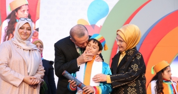 Cumhurbaşkanı Recep Tayyip Erdoğan ve eşi Emine Erdoğan Okçular Vakfı’nda düzenlenen Palet İlkokulu Öğretim Yılı Mezuniyet Töreni’nde torunları Ömer Tayyip Erdoğan’a mezuniyet belgesini vererek heyecanlarına ortak oldular.
