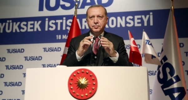 Cumhurbaşkanı Recep Tayyip Erdoğan, Türkiye Sanayici ve İşadamları Derneği’nin (TÜSİAD) Sabancı Center'da gerçekleşen Yüksek İstişare Konseyi toplantısına katıldı. Toplantıya Erdoğan'ın yanı sıra Enerji ve Tabii Kaynaklar Bakanı Berat Albayrak, Ekonomi Bakanı Nihat Zeybekci, TÜSİAD Başkanı Erol Bilecik, TÜSİAD Onursal Başkanı Tuncay Özilhan ve çok sayıda işadamı katıldı. Cumhurbaşkanı Recep Tayyip Erdoğan, özel sektörün lokomotifliğini önemsediğini söyleyerek, "2023 hedeflerimize sizlerin ve tüm girişimcilerin çabalarıyla ulaşacağız. 3 Kasım 2002 iş dünyamız için bir milattır. AK Parti iktidarının başarısı ne dendiğinde hep aynı iki kavramı söyledim. İstikrar ve güven. Türkiye bu iki kavramı yerine getirdiği sürece her alanda kazanmıştır. 2008 küresel krizi tüm dünyayı kasıp kavururken ben, ‘Bu kriz ülkemizi teğet geçecek' demiştim birileri bu sözümle dalga geçmişti. Potansiyelimizin büyüklüğünün farkındaydım çünkü. 2013 yılından itibaren başlayan bir dizi saldırı karşısında ciddi bir mücadele yürütmek zorunda kaldık. 35 yıldır terör mücadele veriyoruz. İçeride terörle mücadele ederken, dışarıda Suriye'deki iç savaşın yansımaları bize yansıdı" diye konuştu.