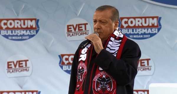 Cumhurbaşkanı Recep Tayyip Erdoğan, Evet Platformu tarafından Abide Meydanı’nda düzenlenen "Çorum Buluşması"nda vatandaşlara hitap etti. Erdoğan, sözlerine Çorum’un manevi muhafızları olan gönül insanlarına Allah’tan rahmet dileyerek başladı. Şair Çorumlu Aşıki’nin "Dost Cemalin Göstermezse" şiirinin bazı bölümlerini okuyan Erdoğan, "Bizler de bugün Çorum’un misaline ermek için geldik. Çorum’u, Çorumlu kardeşlerimizi gerçekten çok özledik. Sinemizde büyüyen hasret dağına gayrı ferman dinletemedik" şeklinde konuştu.