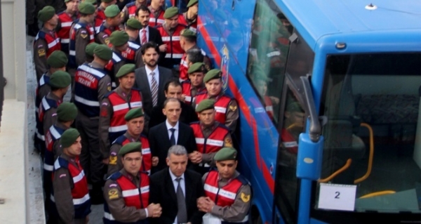 Muğla E Tipi Kapalı Ceza ve İnfaz Kurumunda bulunan 44 tutuklu sanık, sabah erken saatlerde geniş güvenlik önlemleri altında cezaevinden alınarak duruşma salonuna dönüştürülen Muğla Ticaret ve Sanayi Odası toplantı salonuna getirildi. Sağanak yağış nedeniyle sanıklar duruşmanın yapılacağı binaya araçla alınırken gazeteciler ve güvenlik güçleri zaman zaman zor anlar yaşadı.