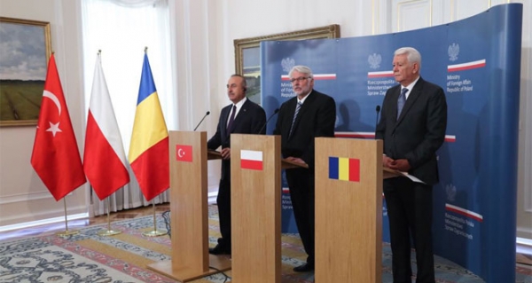 Dışişleri Bakanı Mevlüt Çavuşoğlu,Varşova'da gerçekleşen ‘Polonya-Romanya-Türkiye Üçlü Toplantısı’nda görüşülen konular hakkında basına açıklamalarda bulundu. Çavuşoğlu, “Bundan tam bir sene önce ikinci toplantımızı yine hep birlikte Ankara’da gerçekleştirmiştik. 15 Temmuz hain darbe girişiminden sonra dostlarımız Polonya ve Romanya, Türkiye’ye olan desteklerini göstermek için Ankara’ya gelmişlerdi. Kendilerine bir kez daha teşekkür ediyorum. Bugünkü toplantımıza sabahki oturuma Jens Stoltenberg de katıldı ve kendisiyle çok verimli görüş alışverişinde bulunduk. NATO’nun daha önceki zirvelerde aldığı kararların uygulamasını görüştük. Aynı şekilde NATO’nun doğu kanadında müttefiklerin beklentilerinin karşılanması gerektiğini vurguladık. 2018 NATO Zirvesi’nin hazırlıkları konusunda düşüncelerimizi paylaştık” dedi.