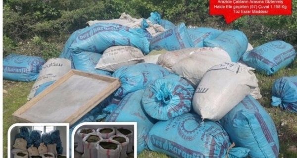 Diyarbakır Valiliğinden yapılan açıklamada, İl Jandarma Komutanlığınca, elde edilen istihbari bilgiye istinaden Lice ve Eğil ilçeleri kırsal alanında bölücü terör örgütünün finans kaynağı olan imal edilmiş yasa dışı uyuşturucu maddeleri ele geçirmek maksadıyla 17 Mayıs 2017’de operasyonel faaliyet yapıldığını kaydetti. Açıklamada, “İcra edilen faaliyet kapsamında, Lice İlçesi Oyuklu ve Kabakaya köyleri arasında kalan dağlık ve ormanlık arazide 4 ayrı noktada gizlenmiş vaziyette 57 çuval içerisinde toplam bir ton 158 kilogram toz esrar maddesi ele geçirilmiş, bir şüpheli şahıs tutuklanmıştır. Eğil ilçesi Kaya köyü mülki sınırları içerisinde 52 bin kök kenevir bitkisi tespit edilmiş ve bir şüpheli şahıs gözaltına alınmıştır. Cumhuriyet Savcılığının talimatı ile esrar maddesine el konulmuş, kenevir bitkileri yerinde imha edilmiş olup, adli işlemlere devam edilmektedir. Bölgemizde yaşayan vatandaşların huzur ve güvenliğinin sağlanması ve BTÖ‘nün finans kaynaklarının yok edilmesi maksadıyla narko-terörizmle mücadeleye yönelik çalışmalara artan bir azim ve kararlılıkla devam edilmektedir” denildi.