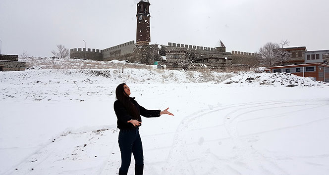 Erzurum’da kar yağışı nedeniyle bazı vatandaşlar karla kaplanan evlerinin damlarını küredi.