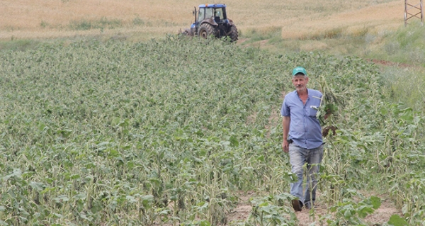 Elmalı Köyü Muhtarı Mustafa Korucu, dolunun 15 dakika etkili olduğunu belirterek, “Dolu köyümüzde bin ila bin 500 dekar alanda etkili oldu. Vatandaşın buğday ve Ayçiçek tarlaları zarar gördü. Çok üzgünüz. Doludan sonra gece tarlalarımızı dolaştık. Tarlasını gören hüzünlendi” dedi.