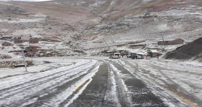 Eğribel Geçidi dolu yağışıyla beyaza büründü