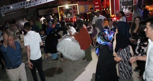 Olay yerine gelen çok sayıda itfaiye ekibi, dumandan etkilenen gelin ve damadın olduğu 14 kişiyi kurtararak sağlık ekiplerine teslim etti. Dumandan etkilenen 14 kişi kentteki hastanelere kaldırılırken, sağlık durumlarının iyi olduğu öğrenildi.