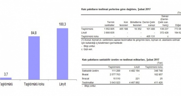 Türkiye İstatistik Kurumu (TÜİK) 2017 yılı Şubat ayı katı yakıtlar istatistiklerini açıkladı. En fazla üretim ve teslimat linyitte gerçekleşti.