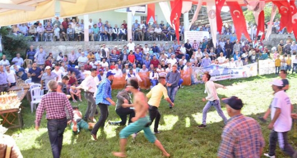 Düzce’nin Akçakoca ilçesinde 8 asırdır dini bayramlarda düzenlenen Karakucak Güreşleri'nde kavga çıktı. Tekme ve yumrukların havada uçuştuğu kavgada yaralananlara sağlık ekipleri müdahale etti.