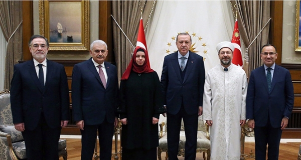 Cumhurbaşkanı Recep Tayyip Erdoğan, Diyanet İşleri Başkanı Prof. Dr. Ali Erbaş ile Başkan Yardımcıları Osman Tıraşçı ve Prof. Dr. Huriye Martı’yı kabul etti.