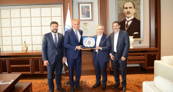 Ankara’da bulunan Başkan Fikret Orman, Maliye Bakanı Naci Ağbal’a nezaket ziyaretinde bulundu. Bakan Ağbal’ın makamında gerçekleşen ziyarete yöneticiler de katıldı.