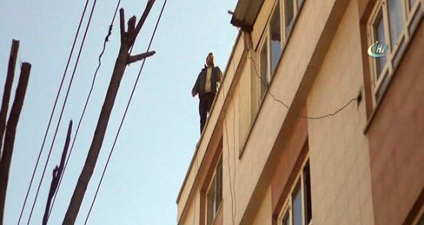İntihar girişiminin olduğu binada oturan vatandaşlar ise binanın pencere ve balkonlarına çıkarak, büyük bir şaşkınlıkla şahsı ve çevredeki vatandaşları izledi.