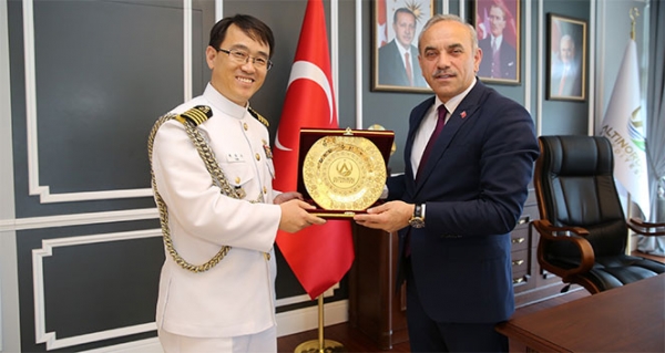 Türkiye Muharip Gaziler Derneği Genel Başkanı Emekli Albay Şükrü Tandoğan, Güney Kore Büyükelçiliği Askeri Ataşesi Deniz Kurmay Albay Jaesic Park ve beraberindeki gazileri ağırlayan Altınordu Belediye Başkanı Engin Tekintaş, ziyaretten duyduğu memnuniyeti dile getirdi. Ülkeler arası dayanışmanın önemine vurgu yapan Başkan Tekintaş, bu kapsamda Kore ile olan ilişkilere dikkat çekti. Belediye olarak Sivil Toplum Kuruluşlarına (STK) önem verdiklerinin altını çizen Tekintaş, “Ülkelerin bir birleri ile dayanışması son derece önemli. Dünya da mazlum insanların korunması için işbirliği yapmak gerekiyor. Güney Kore denildiğinde ilk aklımıza gelen ise bu dayanışmadır. Bugün Kore Ataşesini ve gazilerimizi belediyemizde ağırlamak, kardeşlik dayanışması açısından son derece önemli. Belediye olarak derneğimize daha iyi ortamda hizmet vermeleri için yer tahsisinde bulunduk. Ben tüm STK’lara ayrı ayrı teşekkür ediyorum. Muharip Gaziler Derneğimizin yanın sıra birçok dernek ile ortak çalışmalarımızı sürdürmeye devam ediyoruz” dedi.