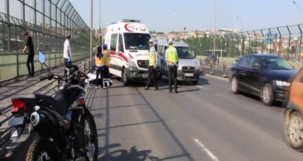 Haliç Köprüsü üzerinde direksiyon hakimiyetini kaybeden bir motosiklet sürücüsü bariyerlere çarptı. Yola savrulan motosiklet sürücüsü hayatını kaybederken köprü trafiği de durma noktasına geldi.