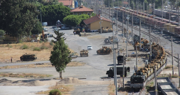 TSK’nın çeşitli birliklerinden demiryolu ile Hatay’a gelen zırhlı personel taşıyıcılar, İskenderun Demiryolu İstasyonu’na ulaştı. Vagonlar üzerindeki çok sayıdaki zırhlı araç ve tank alınan güvenlik önlemleri dahilinde askeri personeller tarafından indirildi.
