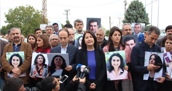 Aralarında Halkların Demokratik Partisi (HDP) sözcüsü olan Osman Baydemir, HDP Eş Genel Başkanı Serpil Kemalbay, HDP Ankara Milletvekili Sırrı Süreyya Önder, HDP Şanlıurfa Milletvekili Dilek Öcalan, HDP İstanbul Milletvekili Celal Doğan ve diğer HDP grubu üyesi milletvekillerinden oluşan heyet, polisin oluşturduğu kontrol noktasına yakın bir bölgeye araçlarıyla geldi. Ellerinde şu an için tutuklu bulunan HDP’lilerin fotoğraflarının yer aldığı dövizleri taşıyan heyet, bir basın açıklaması yaptı.
