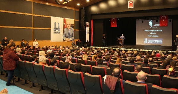 “Erzurum bu gününü altın çağı olarak anlatacak. Özellikle Cumhuriyet döneminde değer verilmiş ama bunu taraf tutarak söylemiyorum AK Parti döneminde altın çağını yaşıyor. Bu dönemde gelen iktidarlarımız şehre çok büyük katkılar sunmuşlardır. Bugün şehrin renginin değiştiğini şehrin üzerine renk geldiğini görürsünüz. Burada Belediye Başkanımıza ve tüm çalışanlara teşekkürlerimi sunuyorum. Bu şehre verdiğimiz değerin bir sebebi var. Bu şehre Cumhurbaşkanımız ve Genel Başkanımızın çok büyük bir bağlılığı var. Biz hafta sonu kongrelerimizi yaparken Sayın Başbakan Yardımcımız da söyledi. Erzurum’dan bahsedilince Cumhurbaşkanımızın bakışı ve gözleri başka bir hal alıyor. Büyük bir sempatiyle bakıyor bu şehre. Onun desteği arkamızda olmasaydı bu kadar yol alamazdık. Bu kadar muhteşem eseri ortaya çıkaramazdık. Onun için huzurlarınızda Cumhurbaşkanımıza şükranlarımı belirtmek istiyorum. İbrahim Erkal bizim içimizden çıkmış diğer sanatçılardan farkı olan bir kişiydi. Bizim geleneğimizle modernliği uzlaştıran bir sanatçıydı İbrahim Erkal. O nedenle o kısa hayatı boyunca bir vefa örneği sergiledi. Geçmişle gelecek arasında bir bağ kurmaya çalıştı. Onun içinde bu şehir onu unutmadı ve bu kadar muhteşem bir kültür merkezine onun adı verildi. Ve bu vefalı davranışından dolayı Büyükşehir Belediye Başkanıma şükranlarımı sunuyorum. Büyükşehir Belediye Başkanıma ikinci bir teşekkürü daha ifade etmek istiyorum. Dadaş Sineması bizim hatıralarımıza girmiş bir yerdi. Başkanımız sadece İbrahim Erkal’a değil bizim gibi burada hatırası olan insanlara da bir vefa örneği gösterdi. Burayı yeniden ayağı kaldırdı. Onun için kendisine çok teşekkür ediyorum.”
