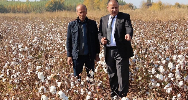 Pamuk tarlalarında incelemelerde bulunan İl Gıda Tarım ve Hayvancılık Müdürü Özkan Yolcu, hasat öncesi pamuk tarlalarını ziyaret ederek incelemelerde bulundu.