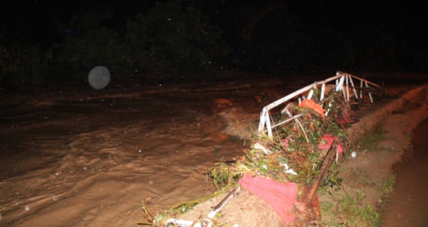 Kent genelinde etkisini sürdüren sağanak yağış dereleri taşırdı. Yollar çamur ve su ile kaplandı. Dereden ulaşımı sağlayan köprü koparak sürüklendi. Yolun karşısındaki restorana ulaşımın sağlandığı köprü bağlantılarından koptu. Restoranda bulunan 5 kişinin olay öncesi zabıtaya ait pikap araçla bulundukları yerden kurtarıldıkları öğrenildi.