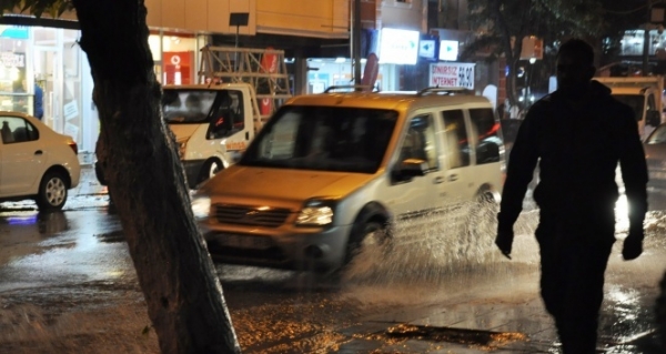 Duraklar ve işyerlerinin önlerine sığınan vatandaşlar, nehire dönen caddelerde karşıdan karşıya geçmekte zorlandı.