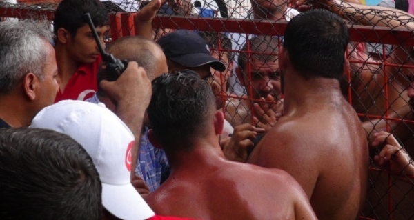 Saraiçi Er Meydanın’da pehlivanlar arasında çıkan kavgada bir pehlivan sağ göğsünden ve dudağından yaralanarak hastaneye kaldırıldı. Çevik kuvvet ekipleri, pehlivanlar arasında çıkan kavgaya müdahale ederken güreşseverler de zaman zaman gerginlik yaşıyor.