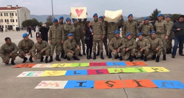 İzmir’in Foça ilçesinde, komando Uzman Çavuş Selahattin D. yemin töreni sonrasında kız arkadaşı Dilek C.’ye komando marşıyla evlenme teklifi yaptı.