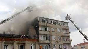 Öte yandan, yangın esnasında binadan kopan bir parça karşı binanın çatısına düştü. Tüm bu yaşananlar ise kameralara yansıdı.