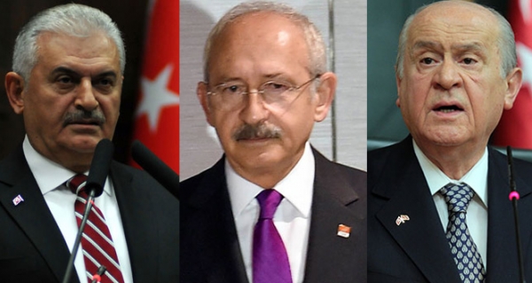 Yıldırım, Bahçeli ve Kılıçdaroğlu konuşmalarının ardından tokalaştı.