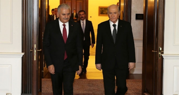 MHP Genel Başkanı Devlet Bahçeli, Başbakan Binali Yıldırım'ın daveti üzerine Çankaya Köşküne geldi. Yıldırım ve Bahçeli'nin, yeni anayasa teklifi üzerinde görüş alışverişinde bulunması bekleniyor. Öte yandan, Başbakan Yıldırım'ın Bahçeli'ye terörle mücadele kapsamında sürdürülen operasyonlar hakkında da bilgi vermesi bekleniyor.