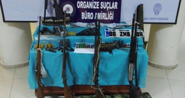 Alınan bilgilere göre, Van Emniyet Müdürlüğü Kaçakçılık ve Organize Suçlarla Mücadele Şubesi ile MİT görevlileri, silah kaçakçılarına yönelik 15 adrese eş zamanlı ortak operasyon düzenledi. Haklarında gözaltı kararı bulunan 24 kişiden 15’i operasyonla gözaltına alındı. 15 kişinin adreslerinde yapılan aramalarda ise 7 av tüfeği, 4 tabanca, değişik tabancalara ait 17 şarjör, 150 tabanca fişeği, 150 av tüfeği fişeği, kurusıkı tabancaların orijinal tabancalara dönüştürülmesinde kullanılan çok sayıda malzemeyle 30 bin lira da para ele geçirildi. Gözaltındaki şüphelilerin emniyetteki işlemlerinin devam ettiği belirtildi.