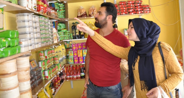 Balıkesir'de mülteciler için bir bakkal dükkanı açan Hasan Acar'ın dükkanında ürünlerin üzerinde Arapça etiketler olması büyük ilgi çekiyor. Bakkal sahibi Hasan Acar yaptığı açıklamada, "Ben 20 yaşındayım Erzurum Atatürk Üniversitesinde öğrenciyim. Benim annem Suriyeli, babam Türk. Çevreme baktığımda Suriyeliler başta olmak üzere mülteciler Balıkesir'de çok. Böyle bir bakkal dükkanının ihtiyaç olduğunu düşündüm gerçekten lazımdı da. Onun için açmaya karar verdim. Elimizdeki malların hepsi Türk malı sadece Bursa'dan getiriyoruz. Oradaki fabrikalar üzerine Arapça yazılar yazıyor Iraklı ve Suriyelilerin anlayabilmesi için. Ürünlerin üzerinde Türkçe ve Arapça yazması hem bizim için hemde müşterilerimiz için çok iyi oluyor. Sonuçta içinde neler olduğunu görüyor ve biliyorlar. En çok genelde Iraklı müşterilerimiz var ama Suriye müşteriler de geliyor. Türk müşterimiz çok az. Biz en çok ekmek, yağ ve pirinç satıyoruz, Özellikle de pirinç, onlarınki biraz farklı ve bizimkine oranla uzun taneli. Ekmek de yine bizim ekmeğimizden farklı lavaş ekmek. Bu ekmeği bütün Türk müşterilerimize de tavsiye ediyoruz. Sabahları 08.30 gibi açıp akşam 10.30 gibi kapatıyoruz. Müşterilerimizin tamamına yakını Suriye ve Iraklı mülteciler oldukları için alım güçleri sınırlı olduğundan genelde veresiye istiyorlar. Biz de elimizden geldiğince onlara yardım etmeye çalışıyoruz. Ancak bizim de imkanlarımız sınırlı, bizimde belirli bir bütçemiz var onları mağdur etmemeye çalışıyoruz" dedi.