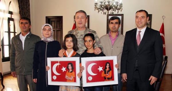 Genelkurmay Başkanı Orgeneral Hulusi Akar, programları dahilinde kuvvet komutanları ile birlikte Elazığ’a geldi. Vali Çetin Oktay Kaldırım tarafından karşılanan Genelkurmay Başkanı Akar, valilik önünde polis mangasını selamladı. Şeref defterini imzaladıktan sonra Vali Kaldırım'la bir süre makamda görüşen Akar, daha sonra Türk bayrağını öperken güvenlik kamerası tarafından görüntülenen ve İhlas Haber Ajansı'nın gündeme taşıdığı amca çocukları 11 yaşındaki Elif ve Rabia Aktaş'la görüştü.