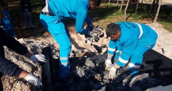 Şanlıurfa’nın Suruç ilçesinde son bir ay içinde binlerce kuş bilinmeyen nedenlerle öldü. Bölgede inceleme yapan ekipler gerekli numuneleri alırken, ölen kuşlar ise kepçelerle kazılan çukurlara gömülüyor.